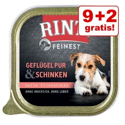 Nur für kurze Zeit! Beim Kauf von 11 x 150 g RINTI Feinest Schälchen Nassfutter für Hunde der Sorte Ihrer Wahl erhalten Sie jetzt 2 Schälchen davon gratis!