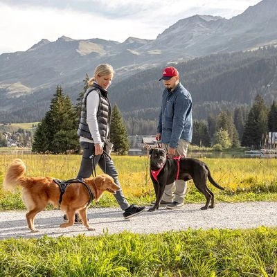 - 2 Möglichkeiten zur Leinenbefestigung: zum Führen und Ziehen, geschlossene Sicherheitsösen
