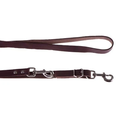 Leine für Hunde, weich & gefettet, 3fach verstellbar, rein pflanzlich gegerbtes & braun durchgefärbtes Material, mit praktischen Karabinerhaken, oberflächenveredelte Beschläge, aus Rindsleder