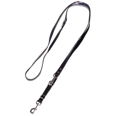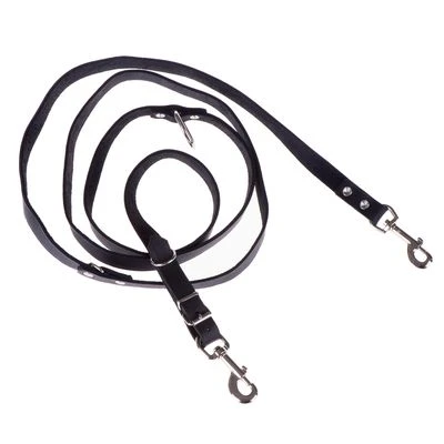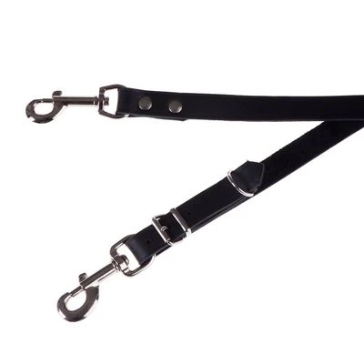 Leine für Hunde, 3fach verstellbar, rein pflanzlich gegerbtes & schwarz durchgefärbtes Material, mit praktischen Karabinerhaken & oberflächenveredelten Beschlägen, weich & gefettet, aus Rindsleder