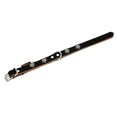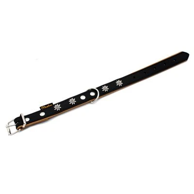Sie suchen für Ihren Vierbeiner ein Halsband im edleren Stil, egal ob für besondere Anlässe oder den täglichen Spaziergang? Mit dem Heim Halsband Edelweiß treffen Sie hierbei garantiert die richtige Wahl. Das Lederhalsband ist mit seinem hochwertigen Schwarz-Naturleder-Look und den eleganten Edelweißbeschlägen ein echter Hingucker!