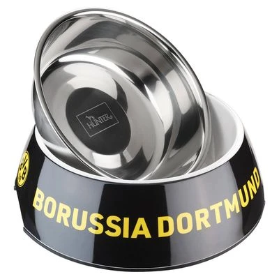 Fußballfans aufgepasst! Mit dem HUNTER Melamin-Napf BVB können Sie Ihre Liebe für den BVB auch mit Ihrem Liebling teilen. Die stoß- und kratzfeste Melamin-Napfhalterung ist in elegantem Schwarz gehalten und kommt mit Borussia Dortmunds Vereinsnamen und -logo im vereinstypischen Gelb. Somit bleibt für Besucher und Familienmitglieder keine Frage mehr offen, welchem Team Sie und Ihr Liebling eigentlich die Treue halten.