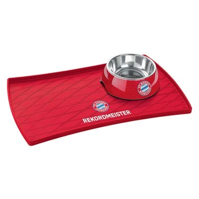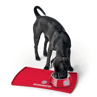 Napfunterlage für Hunde und Katzen im FC Bayern München Look, aus lebensmittelechtem Silikon, hält den Futterplatz sauber, schützt den Boden, rutschhemmend, Platz für zwei Näpfe, spülmaschinengeeignet