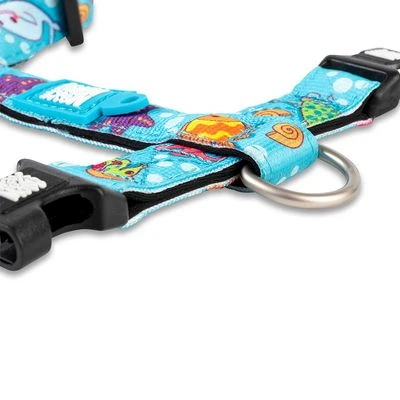 Auffälliges Geschirr für Hunde, im bunten Meeres-Look, schön weich und hypoallergen, belastbare Klick-Verschlüsse, bietet viel Bewegungsspielraum, Öse für Blinki oder Marke, aus Neopren & Polyester