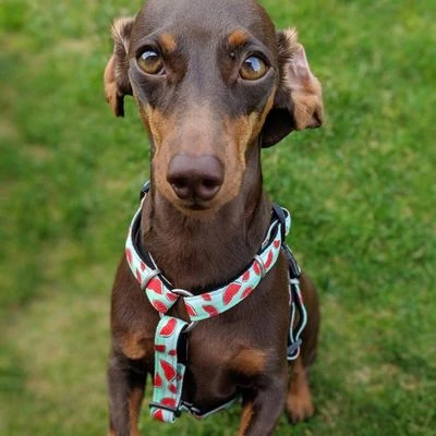 - Leichtes H-Geschirr mit originellem Wassermelonen-Print für kleine bis große Hunde