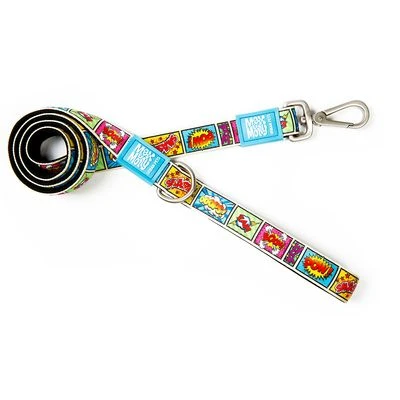 Kurzleine im kultigen Comic-Look für Hunde, Sandwich-Konstruktion, sehr strapazierfähig, weich gepolstert, robuster 360° Karabiner, D-Ring an der Handschlaufe, Länge: 120cm, aus Neopren & Polyester