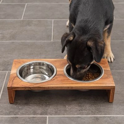- Hochwertige Materialien: Napfbar aus echtem Mango-Holz, rostfreie Edelstahlnäpfe