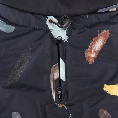 Bei Wind und Wetter bestens gekleidet: Der Nomad Tales Bloom Hundemantel Midnight ist eine tolle Ergänzung für die Hundegarderobe, denn er schützt deinen Vierbeiner vor Kälte und Nässe, wenn das Wetter mal nicht so mitspielt. Der Mantel besteht aus hochwertigen Materialien, einem wasser- und windabweisenden Außenstoff mit buntem Feder-Print und ist innen warm und weich gefüttert.