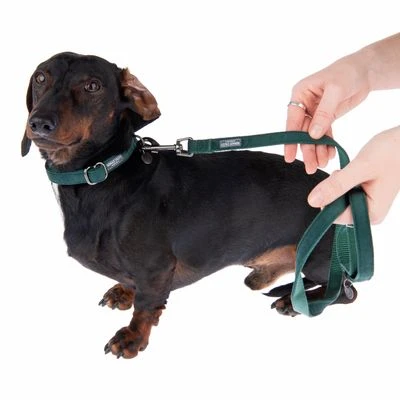 Die 120 cm-Variante der Leine besitzt eine Handschlaufe, einen Karabiner und einen D-Ring.