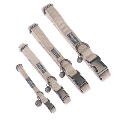 Ein Hundehalsband, das deinen Hund schmückt und dabei auch noch hochfunktional und widerstandsfähig ist? Ja, das gibt es: Das Nomad Tales Blush Halsband, taupe kommt im hochwertigen Samt-Look daher und trotzt mit seinem widerstandsfähigen Nylon-Untermaterial dennoch so gut wie jeder Witterung. Dank seiner stufenlosen Verstellbarkeit, schmiegt sich das Halsband perfekt an den Hals deines Hundes und wächst bei Junghunden sogar bequem mit.