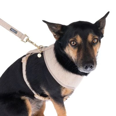 Das Bruststück des Nomad Tales Calma Geschirrs, sand ist wunderbar weich gepolstert und innen zusätzlich mit einem luftdurchlässigen Mesh-Material ausgekleidet, sodass dein Hund sich darin bequem wohlfühlen kann. Der schöne Fischgräten-Look in Kombination mit den mattgoldenen Details und der unaufgeregten Farbgebung verleiht dem Geschirr einen edlen Touch! Wenn dir das Geschirr gut gefällt, kannst du es auch noch um das farblich passende Halsband oder die Leine im „Nomad Tales Calma“-Design ergänzen.