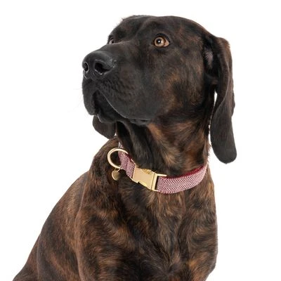 Geschmackvolles Halsband für Hunde, stufenlos verstellbar für perfekten Sitz, im optisch ansprechenden Fischgräten-Design, mit auffälliger Plakette und mattgoldenen Details, aus Polyester & Nylon