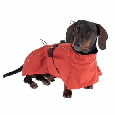 Eleganter Regenmantel für kleine bis große Hunde, hochwertige Verarbeitung, schickes Design, wasserabweisend, an mehreren Stellen anpassbar, reflektiert im Dunkeln, maschinenwaschbar, Farbe: kupferrot