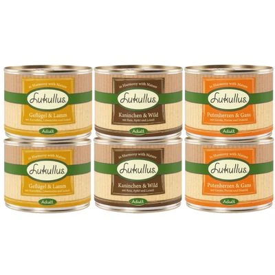Lukullus Nassfutter-Naturkost für Feinschmecker-Hunde, mit liebevoll ausgesuchten Zutaten, frischem Fleisch, Gemüse, Obst & wertvollen Ölen. Naturbelassene Rezepturen in den klassischen Sorten im Mix testen!
