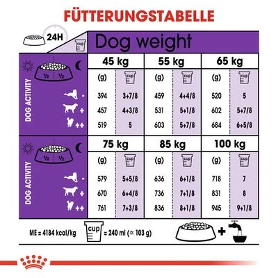 Alle Royal Canin Produkte durchlaufen eine umfassende Qualitätskontrolle, um eine optimale Futterqualität zu gewährleisten und den individuellen Ernährungsbedürfnissen sowie dem Lebensstil Ihres Hundes gerecht zu werden. Das bedeutet, mit Royal Canin Giant Adult bieten Sie Ihrem sehr großen Hund eine hochwertige und ausgewogene Ernährung.