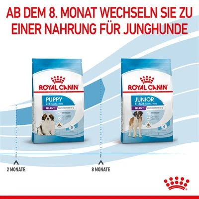 Während der intensiven Wachstumsphase Ihres Riesenrassenwelpen benötigt er ausreichend Kalorien und die richtigen Nährstoffe, um gesund zu wachsen. In dieser Zeit entwickeln sich seine Knochen, Muskeln, Sinne und das Nervensystem. Royal Canin Giant Puppy enthält maßgeschneiderte Nährstoffe, um die intensive Wachstumsphase Ihres Welpen zu unterstützen und eine übermäßige Gewichtszunahme zu vermeiden.