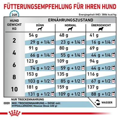 - Hypoallergen: entwickelt für ernährungssensible kleinrassige Hunde, gute Verträglichkeit