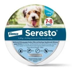 - Halsband 38 cm: Seresto 1,25 g + 0,56 g Halsband für Hunde bis 8 kg. Zur Behandlung (Ctenocephalides felis) und Vorbeugung (Ctenocephalides felis, C. canis) eines Flohbefalls.