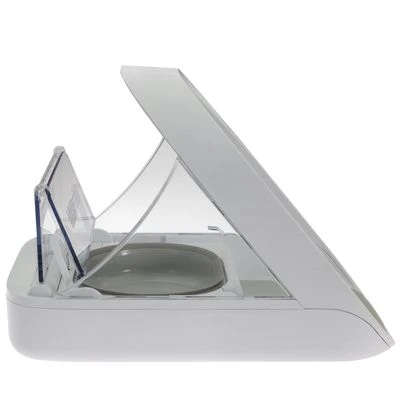 Der Futterautomat verfügt über eine Mikrochip gesteuerte Zugriffskontrolle, indem der Mikrochip Ihres Stubentigers gescannt und zukünftig vom Futterautomat wiedererkannt wird. Die Klappe des Automaten öffnet sich anschließend nur noch für registrierte Tiere. Nähert sich ein anderes Tier dem Fressnapf, öffnet sich die Klappe nicht oder verschließt sich sofort. Der Futterautomat stellt so sicher, dass jedes Tier das richtige und ihm zugewiesene Futter frisst. Der Deckel des Automaten schließt sich automatisch wenn das Tier aus dem Sensor-Bereich tritt.