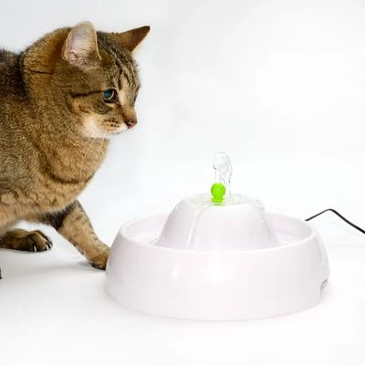 Der Brunnen kommt inklusive 4 unterschiedlichen Düsenaufsätzen aus Silikon zu Ihnen, die verschiedene Fontänen erzeugen. So ist für Abwechslung beim Trinken gesorgt. Das Wasser fließt an drei Seiten herunter, weshalb sich der Trinkbrunnen auch für Haushalte mit mehreren Katzen gut eignet. Das Modell punktet zudem mit einem leisen und energiesparenden Betrieb. Die Pumpe wird durch den mechanischen Filterschwamm vor groben Verunreinigungen wie Fell und Futterresten geschützt. Das trägt zu einer längeren Lebensdauer der Pumpe bei.
