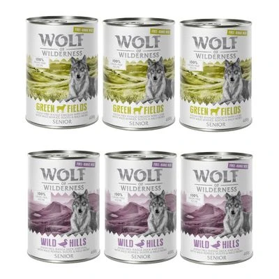 Verantwortungsvoll & schmackhaft: Erhältlich ist Wolf of Wilderness Senior „Freiland-Fleisch“ 6 x 400 g in den Sorten:
